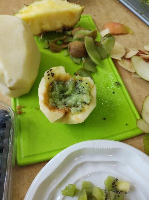 Przygotowaliśmy również szkolną akcję „Kolorowo, owocowo i jak zawsze bardzo zdrowo”. Dzieci z klas 4 i 5 przygotowywały kolorowe szaszłyczki oraz sałatki i zapraszały na degustację swoich specjałów kolegów z klas starszych.