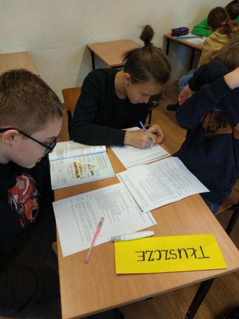 Natomiast klasa 7b przeprowadziła klasową akcję: „Czy wiesz, co jesz?”. Uczniowie podczas pracy grupowej mieli okazję przeanalizować treść piramidy zdrowia.