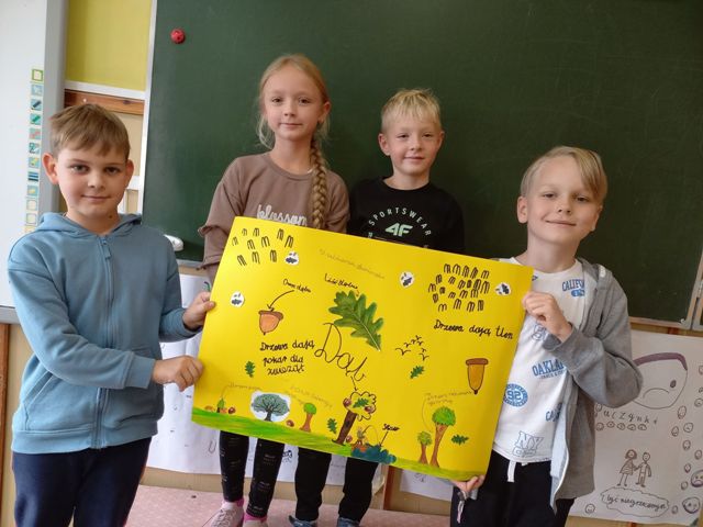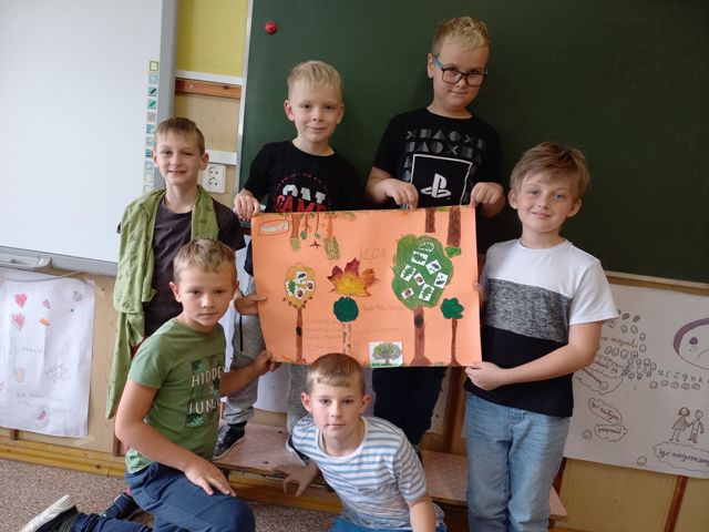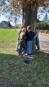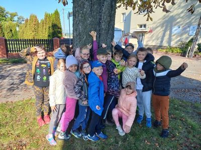 W październiku uczniowie klas I-III odbyli serię zajęć przyrodniczych związanych z parkiem, lasem, rozmawialiśmy o zmianach zachodzących w przyrodzie związanych z nadejściem jesieni. Podsumowaniem tych zajęć były warsztaty przyrodnicze z panią Anna Hodorowicz, pracownikiem Zespołu Parków Krajobrazowych Województwa Śląskiego w Kalinie. Razem z panią Anią utrwaliliśmy wiadomości związane z budową drzewa, budową lasu, gatunkami drzew oraz podsumowaliśmy wiedzę o bezcennych korzyściach, jakie dają nam lasy i drzewa. Nie zabrakło również o symbolicznego przytulenia drzewa.