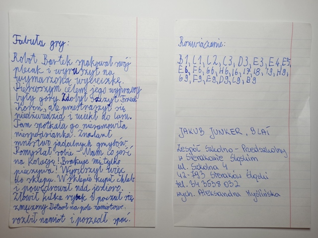 W ramach Europejskiego Tygodnia Kodowania Zespół Szkolno – Przedszkolny w Ciasnej zorganizował międzyszkolny konkurs na najciekawszą „zakodowaną” grę planszową. Konkurs skierowany był do uczniów klas I-III. Polegał on na wymyśleniu i utworzeniu z klocków konstrukcyjnych swojego bohatera Robota wraz z grą przygotowaną na schemacie maty do kodowania.