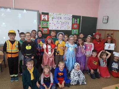 Kto z nas nie lubi bajek..? Na chwilę przenieść się w malownicze krainy, pełne przygód i osobliwych postaci..? Mieliśmy to szczęście, że w naszej szkole udało się to! Chociaż na jeden dzień stworzyliśmy bajkową krainę! W miniony poniedziałek, 7 listopada, szkołę przejęły postacie z bajek. Bardzo wielu uczniów przebrało się i wcieliło w bajkowe postacie. W tym dniu, dzięki wsparciu rodziców, świetlica od samego rana obdarowywała uczniów i pracowników kolorowymi ciasteczkami. Dzieciaki brały udział w konkursach na najlepsze przebranie, w którym zwyciężył Pirat i Teletubiś oraz w konkursie na najlepszą znajomość bajek, w którym zwyciężyły Olga i Liwia. No i oczywiście kto był przebrany – ten nie był pytany!