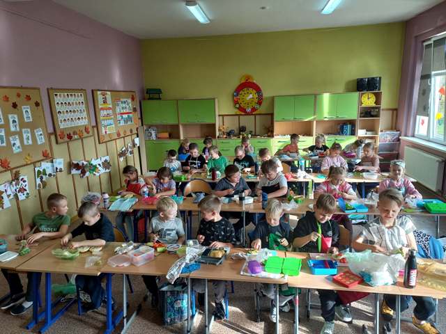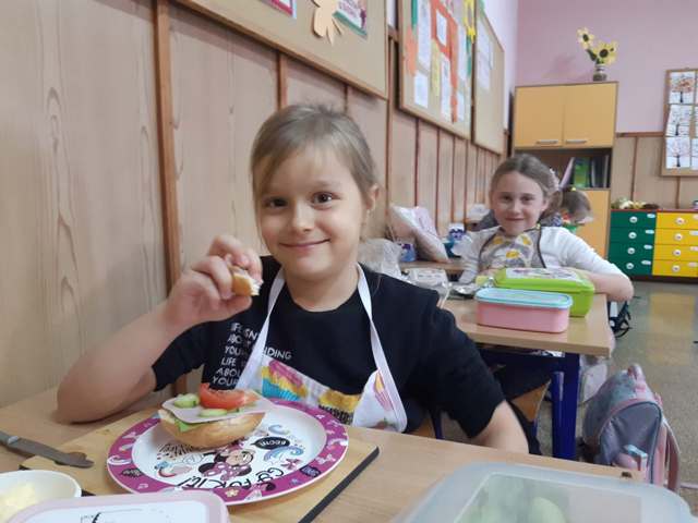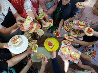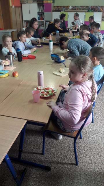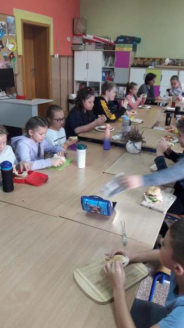 W trosce o prawidłowe nawyki żywieniowe uczniowie klas I-III jak co roku wzięli udział w obchodach Światowego Dnia Walki z Otyłością oraz w ogólnopolskiej akcji Śniadanie Daje Moc. Dzieci z radością spożywały zdrowe drugie śniadanie w postaci banana i jogurtu, jak również samodzielnie przygotowały kanapki z bogatych w składniki odżywcze produktów. Było ciemne pieczywo, warzywa, chude wędlinki, nabiał. Pysznie, zdrowo i kolorowo. A najbardziej cieszy fakt, że zdrowe odżywianie wchodzi w nawyk, co widać każdego dnia w śniadaniówkach naszych uczniów, w postaci porcji owoców i warzyw do drugiego śniadania. Śniadanie Daje Moc!