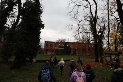 Na zakończenie wycieczki uczniowie zagrali w krótką grę terenową wokół ruin pałacu oraz na terenie parku pałacowego. Musieli odnaleźć oraz rozwiązać zadania i łamigłówki ułożone przez organizatora. Projekt został zrealizowany dwujęzycznie, a naszą opiekunką i przewodniczką była p. Daniela Wochnik, która w bardzo ciekawy sposób przedstawiła fakty historyczne i zachęciła uczniów do aktywnego udziału w zajęciach praktycznych. Po wyczerpującej grze w Górnośląskim Centrum Kultury i Spotkań im. Josepha von Eichendorffa czekał na wszystkich poczęstunek.