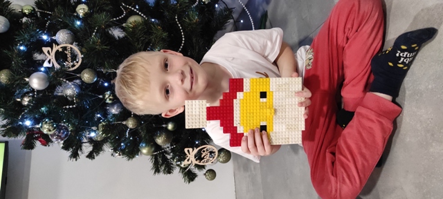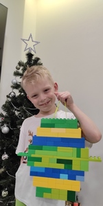 - Miejsce 1, za wyzwane „Klockowy bałwan” – Kasper Janota, klasa II