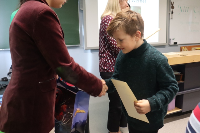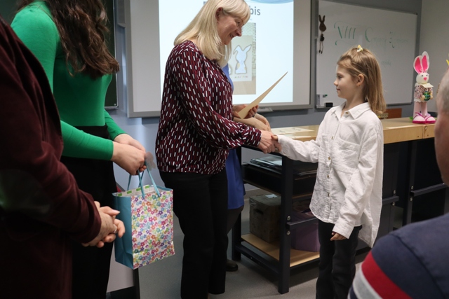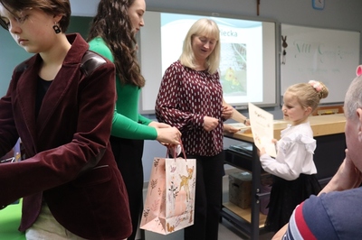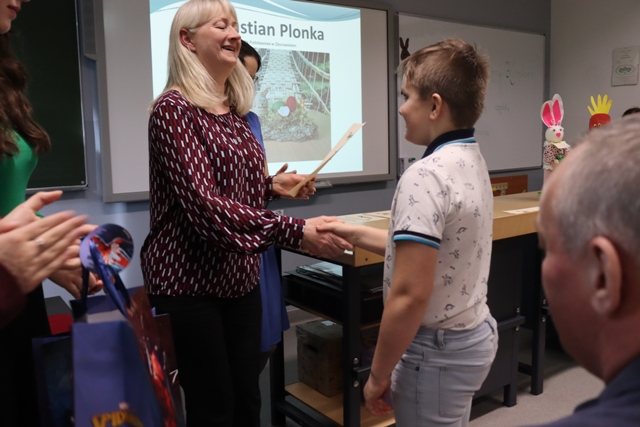 Uczestnikami spotkania byli laureaci konkursu, pani wicedyrektor, nauczyciele i rodzice.