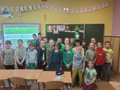 W ramach Szkolnego Tygodnia Językowego obchodziliśmy między innymi Dzień Świętego Patryka. 17 marca- nie jest jedynie świętem narodowym Irlandii, ale również jednym z najchętniej obchodzonych świąt na świecie. Organizowane są liczne parady, imprezy oraz koncerty. W ramach prowadzonej modyfikacji innowacji pedagogicznej uczniowie klas: I, II oraz III mieli okazję uczestniczyć w zajęciach z języka angielskiego dotyczących właśnie tego święta. Nasi uczniowie dowiedzieli się między innymi co wspólnego mają ze sobą: koniczynka, religia chrześcijańska i węże. Zobaczyli film o św. Patryku, śpiewali piosenki, rozwiązali quizy oraz łamigłówki. Happy St. Patrick’s Day!