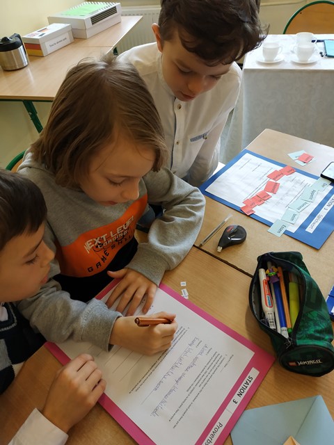 III miejsce: klasa V b – Kacper Plawgo, Lena Wręczycka, Szymon Rost