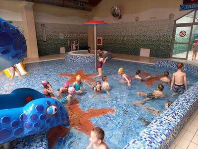 25 kwietnia uczniowie z Molnej udali się na basen Oleska Laguna, gdzie podczas dwugodzinnego pobytu świetnie się bawili, integrowali się międzyklasowo, kształtowali swoją samodzielność oraz odnajdowanie się w nowych sytuacjach. Uczniowie chętnie korzystali ze zjeżdżalni, a w małym basenie odbył się mecz piłki siatkowej. Aktywnie, bezpiecznie i wesoło - przyjemne z pożytecznym.