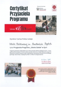 Po tragicznym trzęsieniu ziemi, które miało miejsce w lutym tego roku na terenie Turcji i Syrii, nasi uczniowie bardzo chcieli włączyć się w pomoc dla dotkniętych terenów. Dowiedzieliśmy się o akcji organizacji charytatywnej Caritas, która była skierowana do dzieci w Syrii. Na terenie tego kraju trwa również wojna domowa, w wyniku której zniszczone zostały szkoły i przedszkola, a dzieci nie mogą normalnie chodzić do szkoły. Członkowie naszego Szkolnego Koła Wolontariatu przygotowali zbiórkę pieniężną połączoną ze sprzedażą waty cukrowej, popcornu oraz domowych babeczek. Nasi uczniowie na przerwach delektowali się smakołykami i zebraliśmy 415 złotych, które zostały wpłacone na konto Caritas. Efekty akcji podsumowano w liście, który właśnie otrzymaliśmy: “Wraz z końcem roku szkolnego przyszedł czas na podsumowanie akcji Szkoła Szkole 2022/2023. Dzięki Tobie i zaangażowaniu Twojej społeczności szkolnej w tym roku szkolnym udało nam się zebrać: 358 579 zł! Nie jest to jeszcze ostateczny wynik, ponieważ szkoły wciąż nadsyłają nam środki zebrane w trakcie czerwcowych zbiórek! Kwota ta ma realny wpływ na odmianę życia dzieci w Aleppo. Przed Tobą przykładowe działania, które udało się sfinansować m. in. dzięki wsparciu Twojej społeczności szkolnej: setki poszkodowanych przez trzęsienie ziemi rodzin znalazło schronienie pod dachami szkół; zapewniliśmy wsparcie psychologiczne dzieciom, których rodziny ucierpiały w katastrofie; rozdaliśmy ponad 200 paczek z drobnymi upominkami; już w wakacje wyremontujemy dwie szkoły najmocniej dotknięte przez kataklizm; w szkołach zostanie zainstalowana instalacja fotowoltaiczna..”