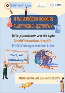 Wojewódzki Konkurs Plastyczno-Językowy Regulamin konkursu Zdjęcia Zobacz również Wycieczka Szkolnego Koła Misyjnego Szkolny zestaw programów i podręczników w roku... Szkoła Pozytywnego Myślenia Wojewódzki Konkurs Plastyczno-Językowy Jesteśmy Eko! „Bliskie spotkanie z robotem” 07 września 2023 Aktualności Wydrukuj Udostępnij Wyświetlono: 339