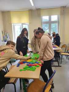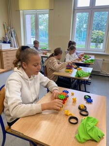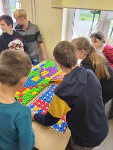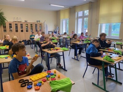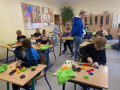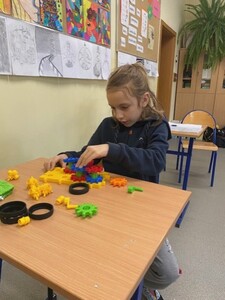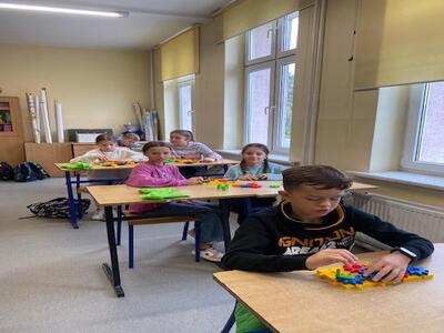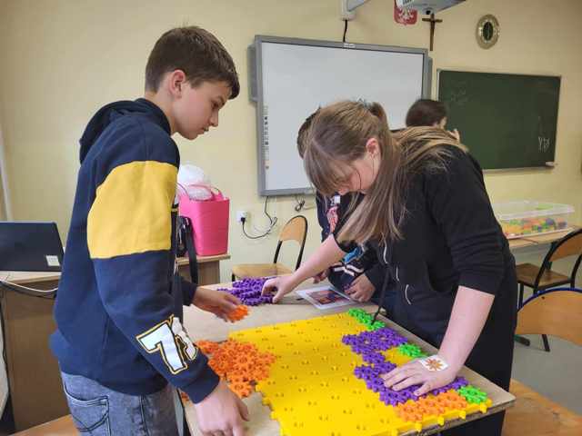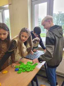 10 października uczniowie klas piątych i szóstych wzięli udział w dwugodzinnych warsztatach edukacyjnych organizowanych w ramach rządowego programu rozwijania szkolnej infrastruktury i umiejętności podstawowych i przekrojowych – „Laboratoria przyszłości”. Celem zajęć było wsparcie uczniów w rozwoju umiejętności związanych z nowymi technologiami, cyfryzacją czy robotyką. Dzieci dowiedziały się, czym jest sztuczna inteligencja, jak działa czat GPT, jakie niesie ze sobą udogodnienia i zagrożenia. Ponadto uczestnicząc indywidualnie w grze w węża, poznały, w jaki sposób komputer rozpoznaje naszą dłoń, jak można nim sterować, by zrealizować wyznaczone działanie. Oprócz tego, konstruując platformy i turbiny elektrowni wiatrowej z klocków korbo uczyły się programowania i rozwijały podstawowe umiejętności miękkie takie jak praca w grupie, czytanie ze zrozumieniem i aktywne słuchanie.