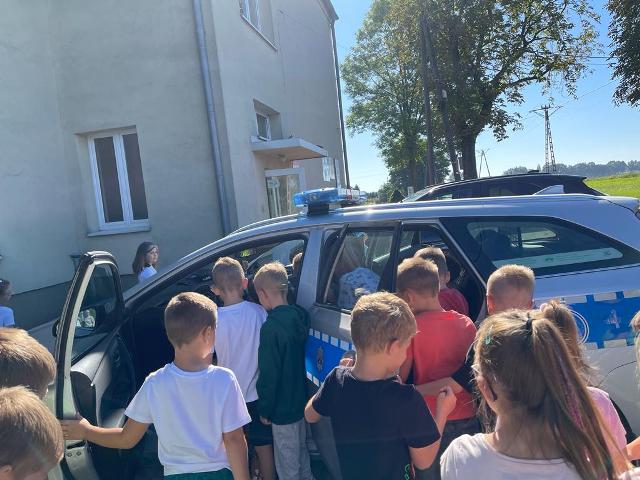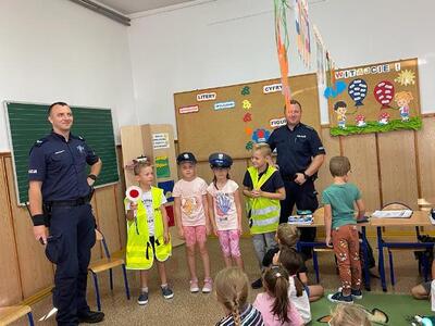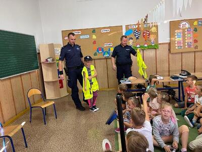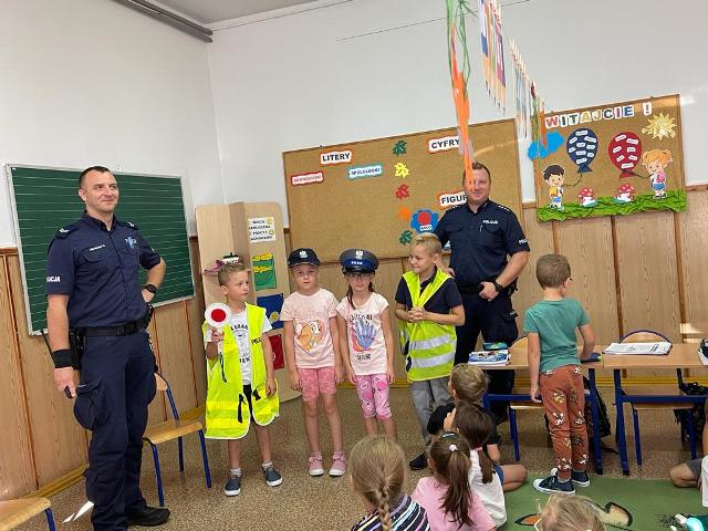 Jak co roku naszą szkołę odwiedzili dzielnicowi, którzy pracują na terenie naszej gminy. Panowie policjanci rozmawiali z najmłodszymi uczniami o tym, jak bezpiecznie poruszać się po drodze. Jak dbać o swoje bezpieczeństwo w drodze do i ze szkoły. Jak się zachować w kontakcie z nieznajomym, agresywnym psem czy po zmierzchu.
