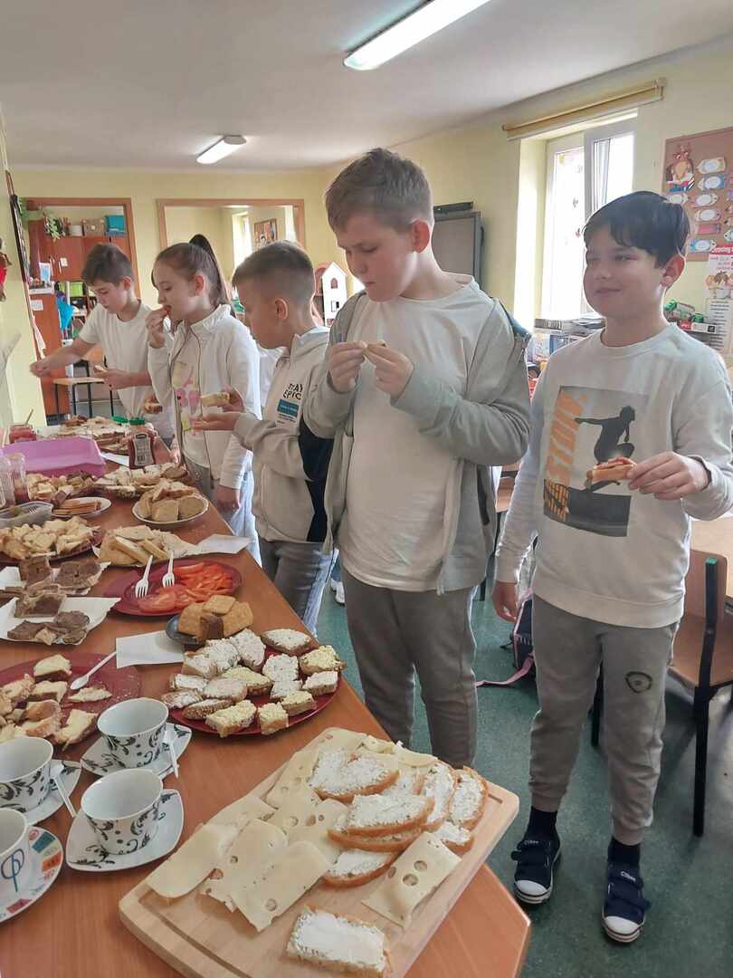 W tym dniu, dzięki stałemu wsparciu Rodziców oraz #PIEKARNIA KAMPA – której serdecznie dziękujemy za podarowany chlebek- nasi uczniowie cały dzień mogli zajadać się samodzielnie przygotowywanymi kanapkami.