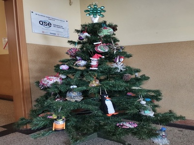 Uczniowie z pomocą rodziców wykonali przepiękne pracę, które były ozdobą choinki w holu naszej szkoły.