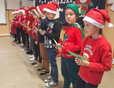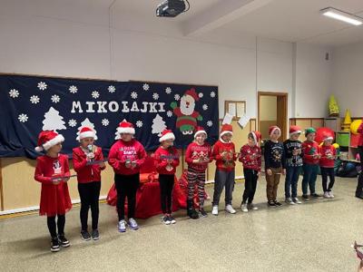 6 grudnia uczniowie klas I-II śpiewali tę wspaniałą piosenkę dla Mikołaja, a On okazał się być bardzo chojny i jak co roku sprawił dzieciom miłą niespodziankę.