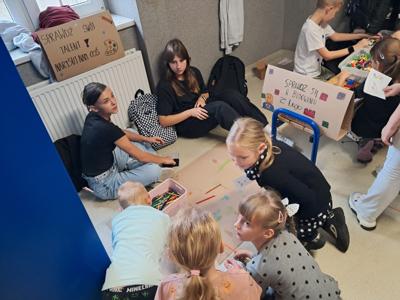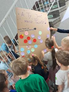 Na szkolnym korytarzu powstały „bazy rozwijania talentów”, które przygotowała klasa 6. Były to stanowiska, przy których dzieci mogły próbować różnych aktywności i sprawdzać swoje umiejętności. Za wykonane zadania uczniowie otrzymywali pieczątki na specjalne karty punktów - a te wezmą udział w losowaniu nagrody w postaci bonu na niepytanie.