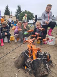 Zwieńczeniem wspólnego świętowania było pieczenie kiełbasek przy ognisku – czas rozmów, śmiechu i dzielenia się wrażeniami z dnia pełnego atrakcji.