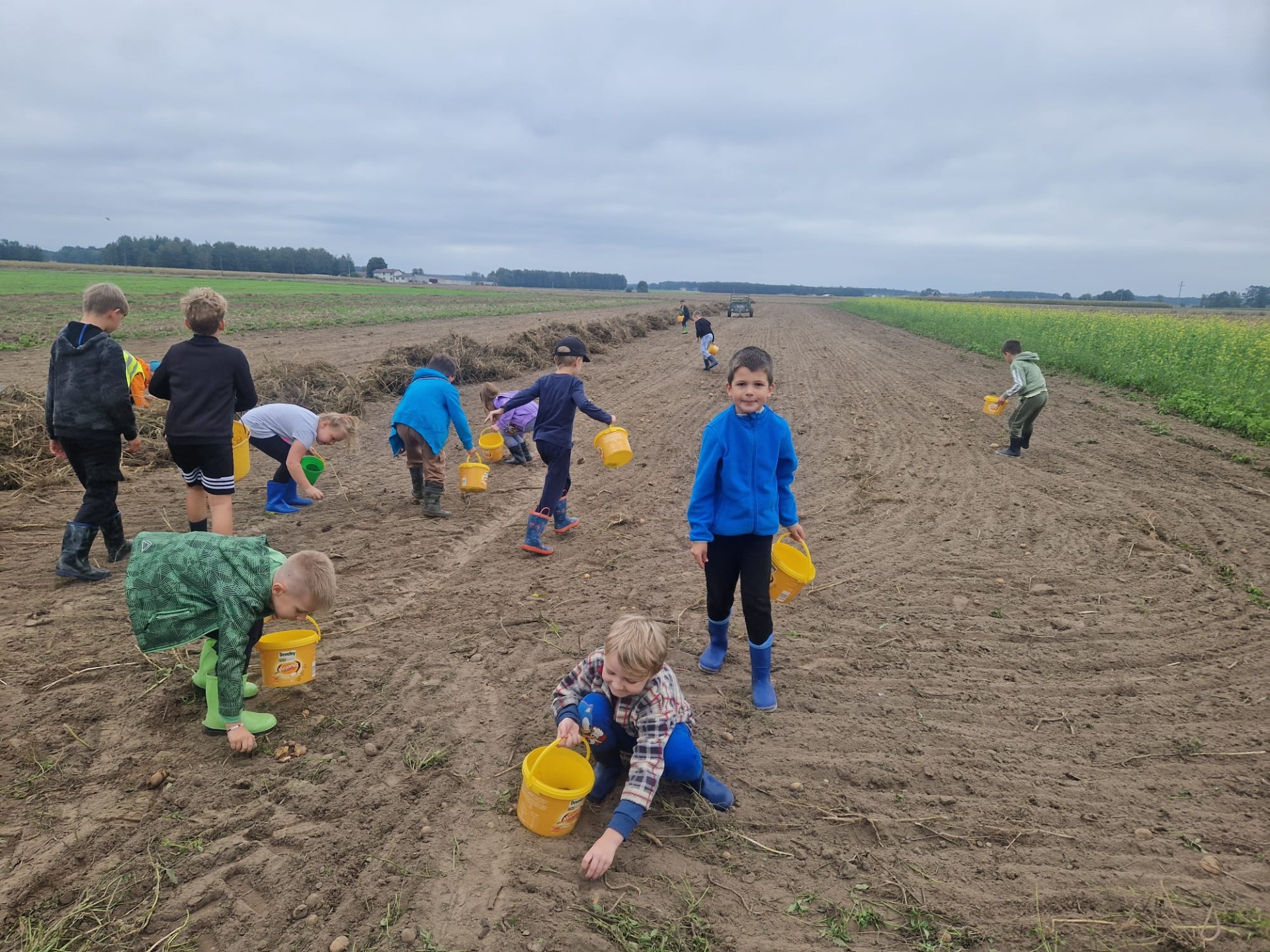 Oprócz wesołej zabawy w towarzystwie rówieśników jednym z najciekawszych punktów dnia było zbieranie ziemniaków, które okazało się nie tylko świetną zabawą, ale też okazją do poznania pracy na polu i znaczenia ziemniaka w naszej kuchni i kulturze.