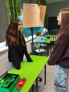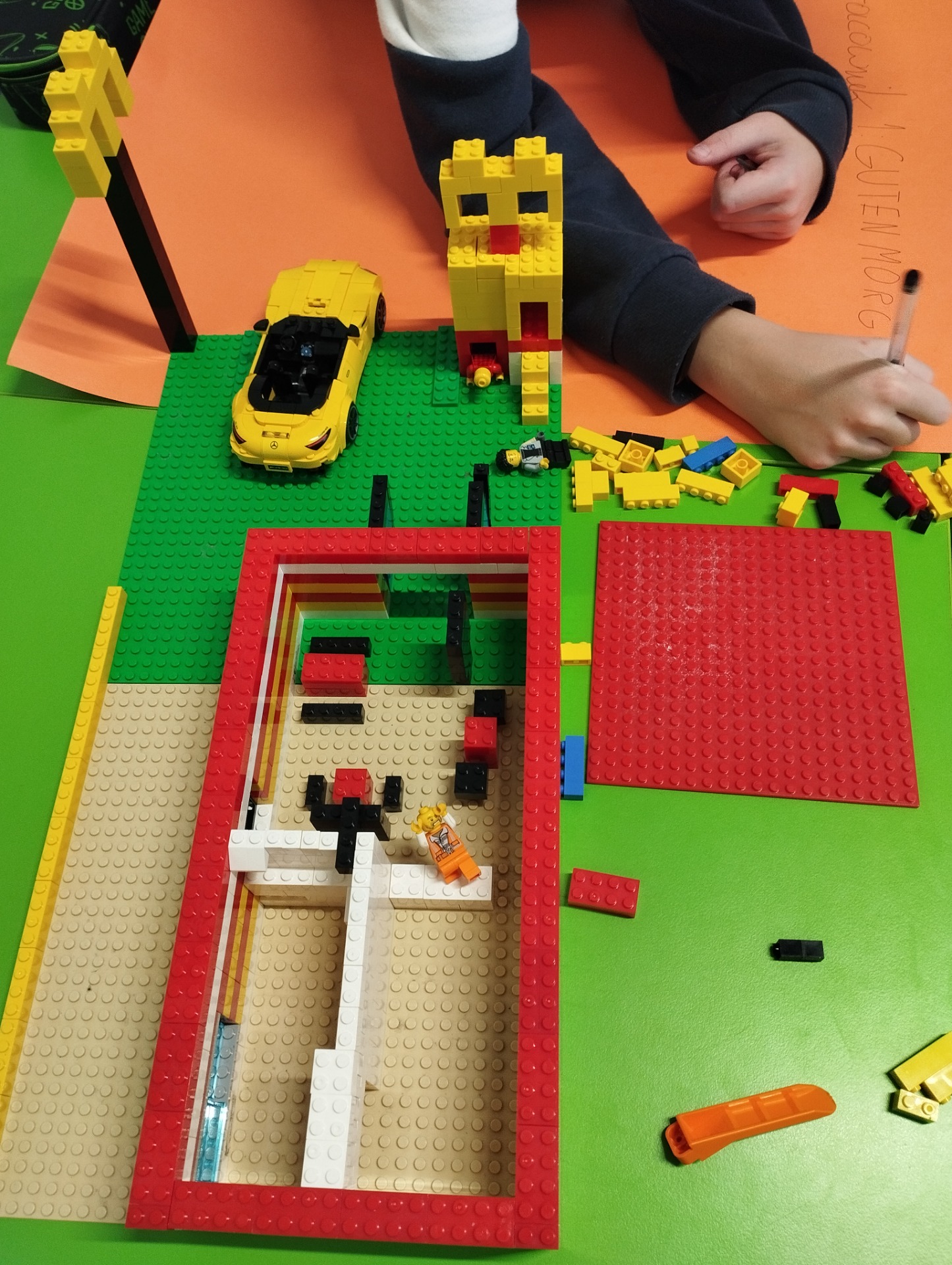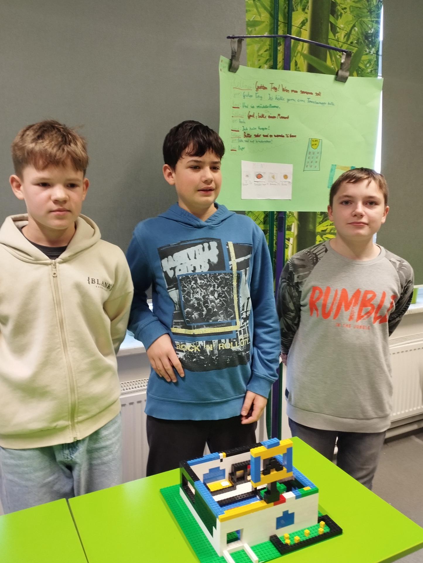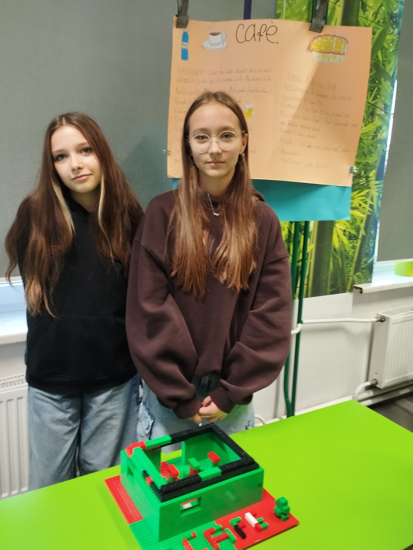 Klocki LEGO w restauracji? Dlaczego nie? Uczniowie klasy 6 podjęli wyzwanie - opracowali w grupach dialogi tematyczne, a następnie zaprojektowali i zbudowali modele wybranych przez siebie lokali, w których mieli złożyć zamówienie. Do każdego projektu przygotowany został plakat z treścią rozmowy. W dniu prezentacji uczniowie przedstawili krótkie scenki tematyczne z wykorzystaniem drobnych rekwizytów oraz zbudowanych wcześniej modeli z klocków. Wystąpienie w języku niemieckim przed klasową publicznością dostarczyło wielu emocji, a uczniowie mieli okazję ćwiczyć kreatywność, współpracę i wcielanie się w rolę. Wszystkie występy zostały nagrodzone oklaskami, a na koniec podziwialiśmy galerię naszych LEGO-restauracji.