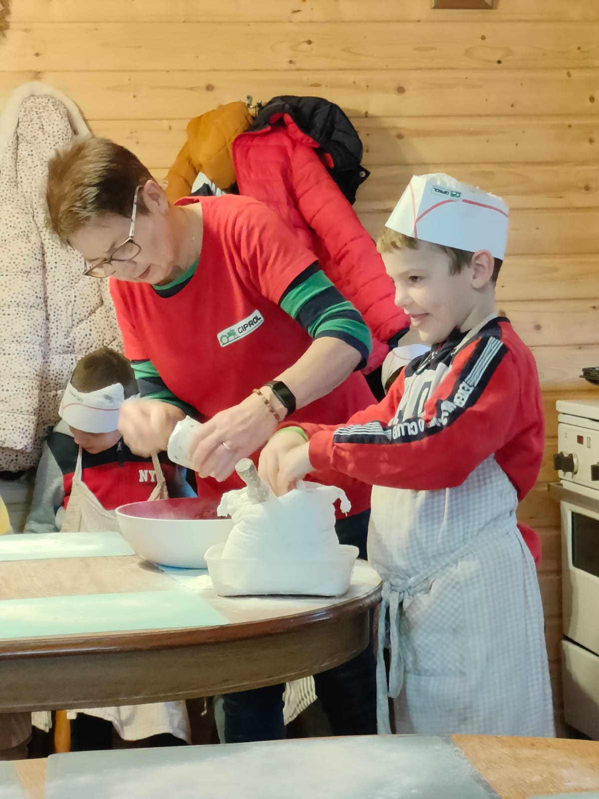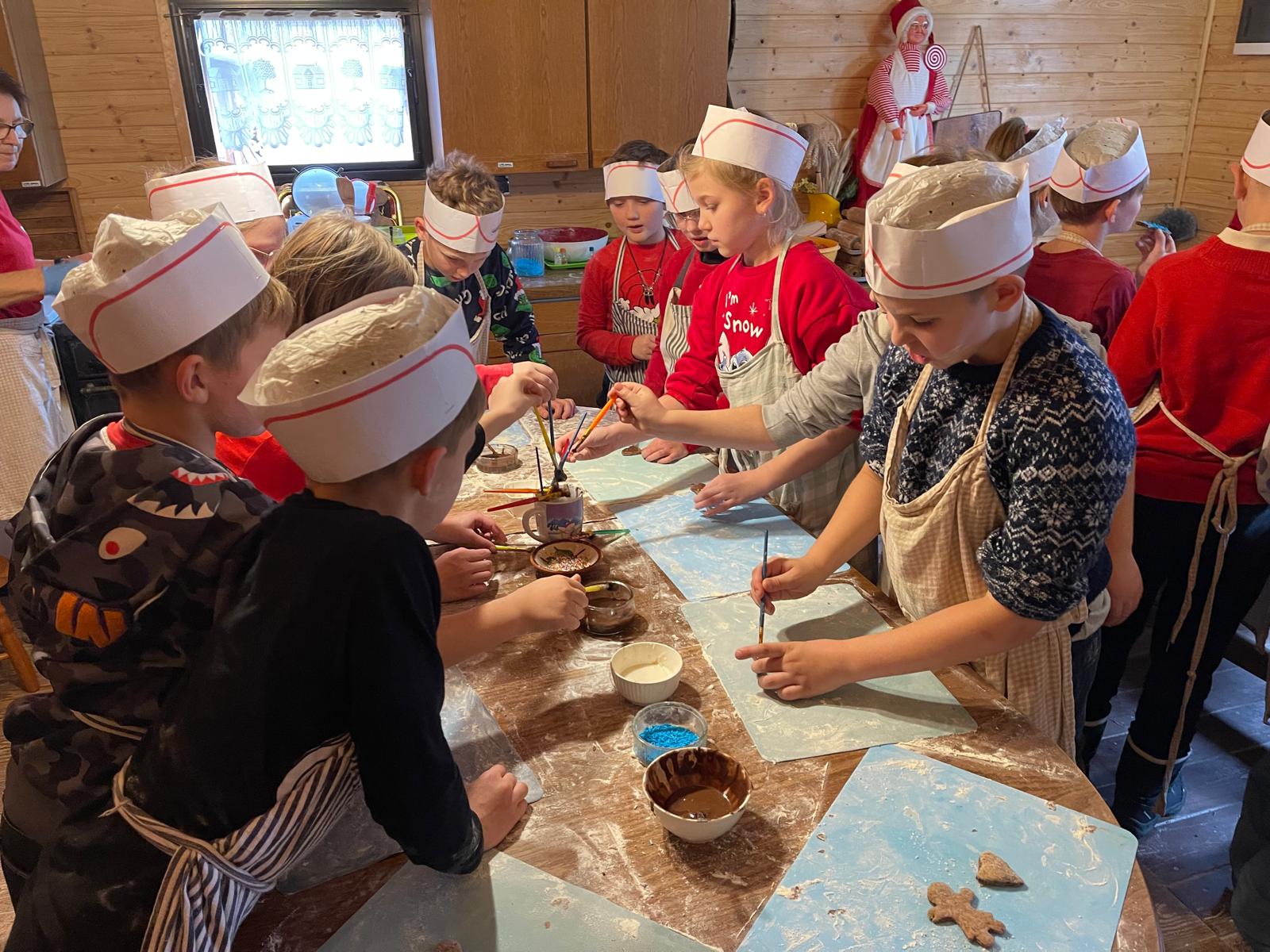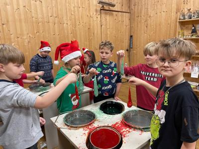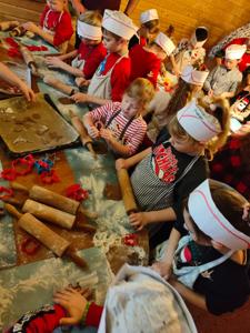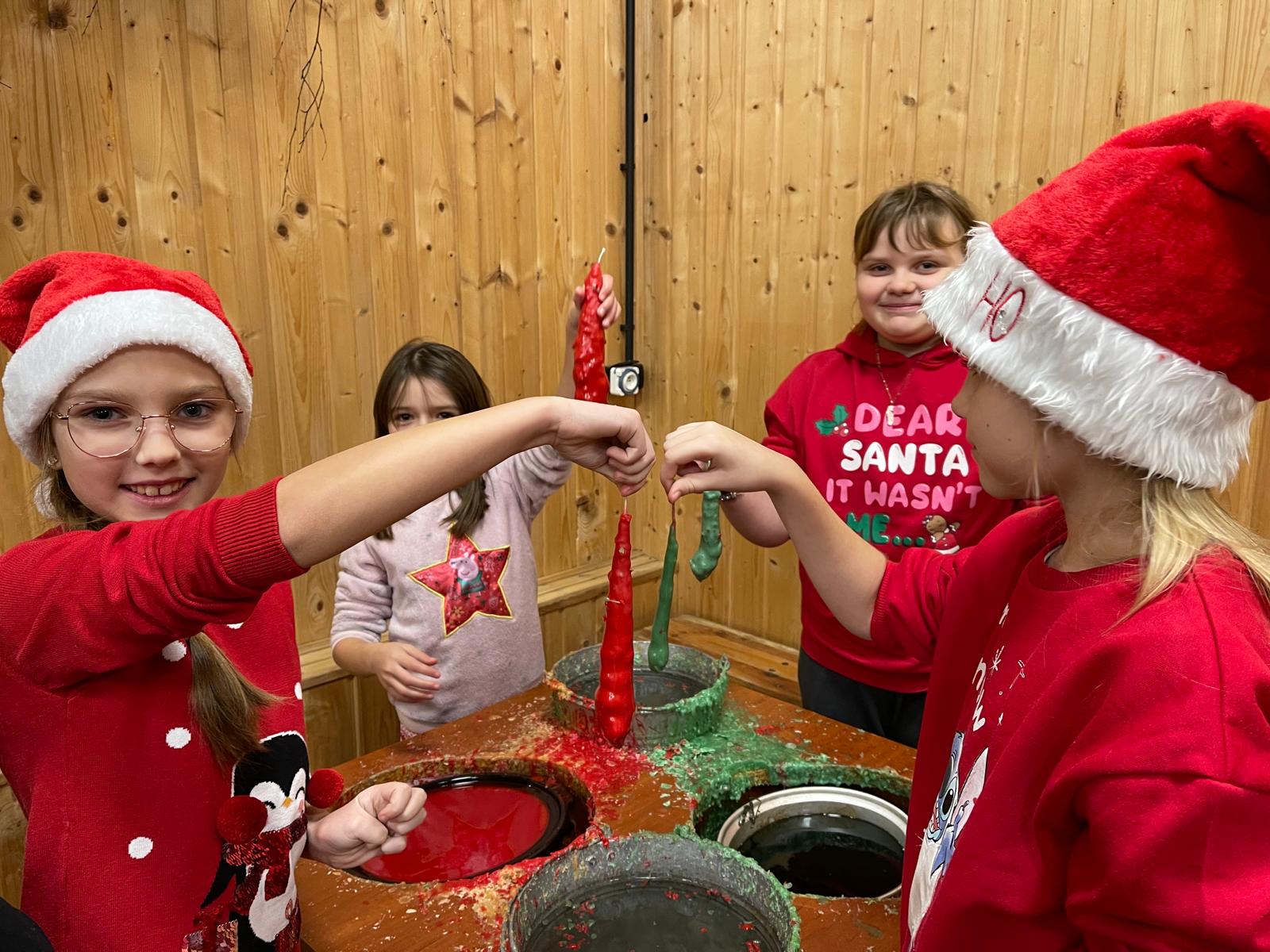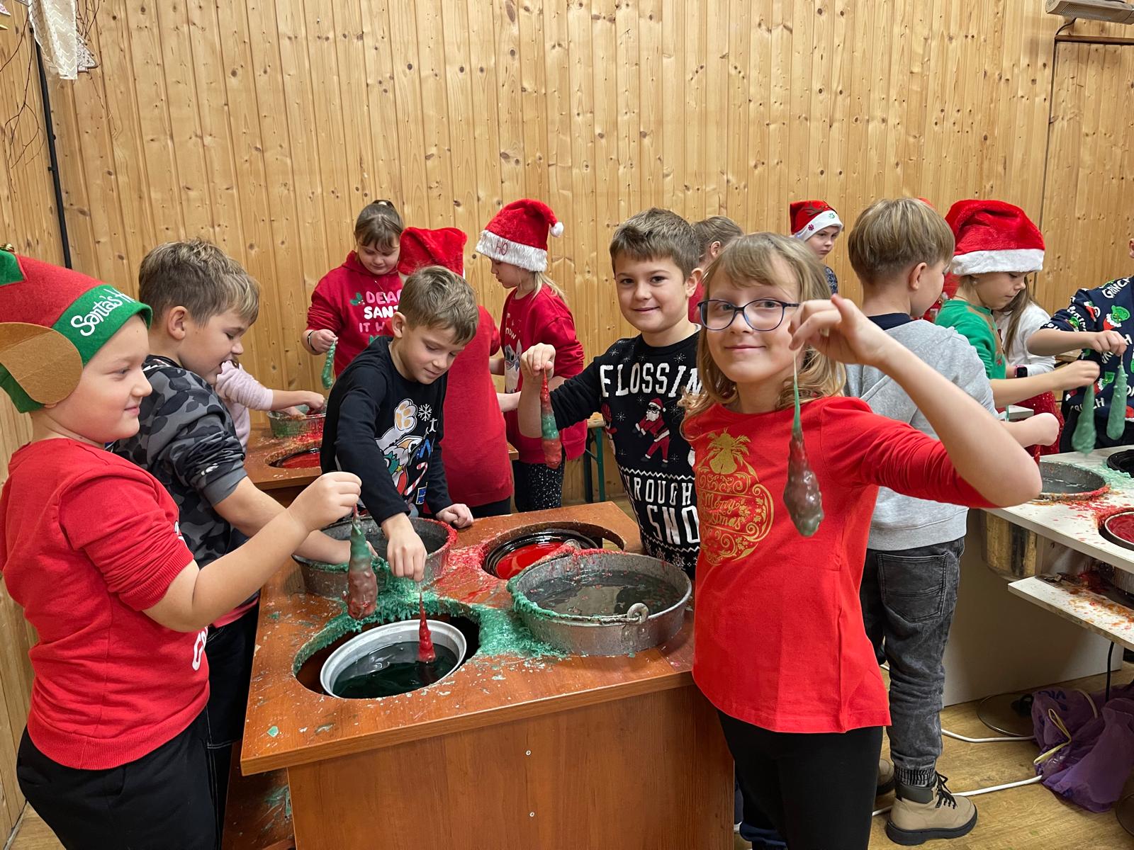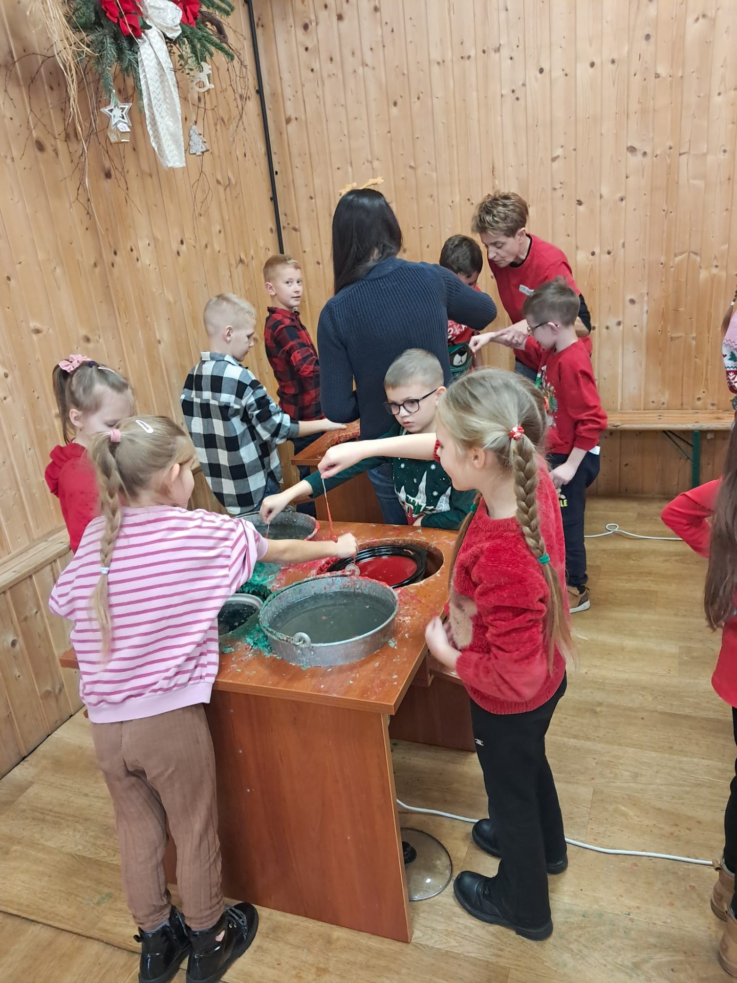 Dzieci uczestniczyły w warsztatach, podczas których piekły i dekorowały pierniki, tworząc piękne, pachnące świąteczne wypieki. Ogromną frajdę sprawiło im także wykonywanie własnoręcznych świec bożonarodzeniowych w kształcie choinki – każdy uczeń zabrał do domu unikatową, ręcznie robioną ozdobę.