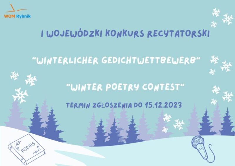 07 listopada 2023 Aktualności “Winterlicher Gedichtwettbewerb”/ “Winter Poetry Contest”:... Regulamin konkursu do pobrania znajduje się pod tym linkiem Czytaj więcej