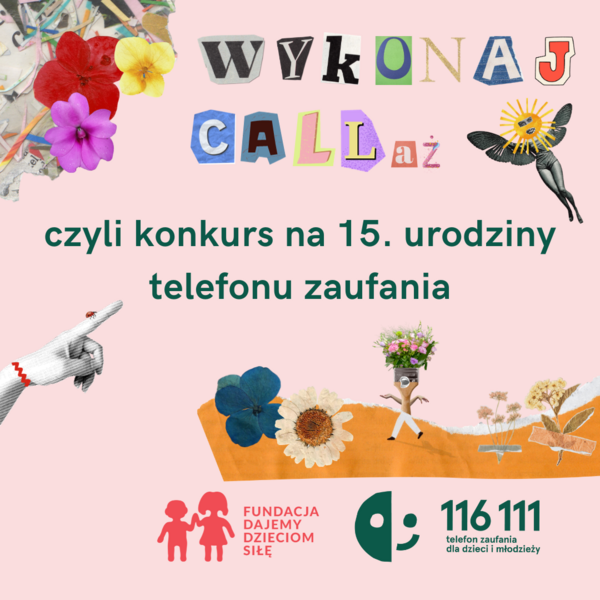 11 listopada 2023 Aktualności „WYKONAJ CALLAŻ” – KONKURS DLA DZIECI I MŁODZIEŻY NA... Już 6 listopada telefon zaufania dla dzieci i młodzieży 116 111 świętować będzie swoje piętnaste urodziny. Przez 15 lat działania zespół konsultancki przeprowadził ponad 1 400 000... Czytaj więcej