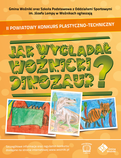22 lutego 2023 Aktualności Konkursy informatyczne Zapraszamy do udziału w dwóch konkursach plastyczno-informatycznych. II POWIATOWY KONKURS PLASTYCZNO-TECHNICZNY „JAK WYGLĄDAŁ WOŹNICKIDINOZAUR?” TEMAT: Spróbujcie... Czytaj więcej